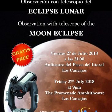 El 27 de Julio de 2018 tendrá lugar un eclipse total de Luna visible desde Australia, Asia, África, Europa y Sudamerica. La fase de totalidad de este eclipse será de 103 minutos: la más larga de todo el siglo XXI. Todo el fenómeno durará en total 6 horas 14 minutos (visible desde Canarias durante 3 horas 29 minutos). La magnitud del eclipse es de 1.609, y la magnitud penumbral de 2.679. El desarrollo del eclipse es el siguiente: Inicio del eclipse penumbral: … Leer más